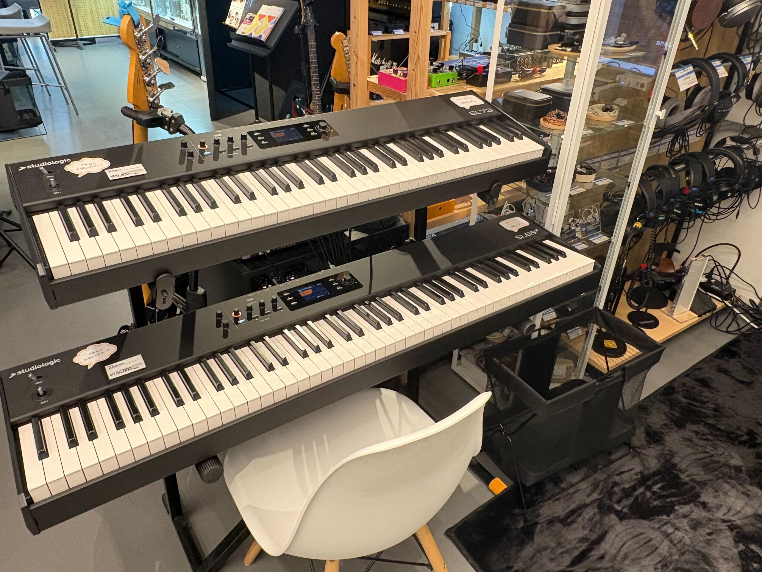 Studiologic製品のハンマーアクション/「SL73 MK2」や「SL88 GT MK2」が展示されております。